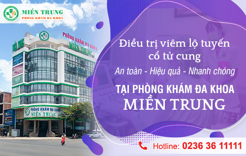 Nếu chị em đang sinh sống và làm việc tại Tp. Đà Nẵng hoặc những tỉnh thành gần thành phố thì có thể tin tưởng, lựa chọnPhòng khám Đa khoa Miền Trung– Tọa lạc: Tòa nhà Abtel Tower, 280 Nguyễn Hữu Thọ, P. Khuê Trung, Q. Cẩm Lệ, Tp. Đà Nẵng để thăm khám và điều trị bệnh phụ khoa, trong đó phòng khám đã thành công trong việc điều trị dứt điểm bệnh viêm lộ tuyến cổ tử cung.